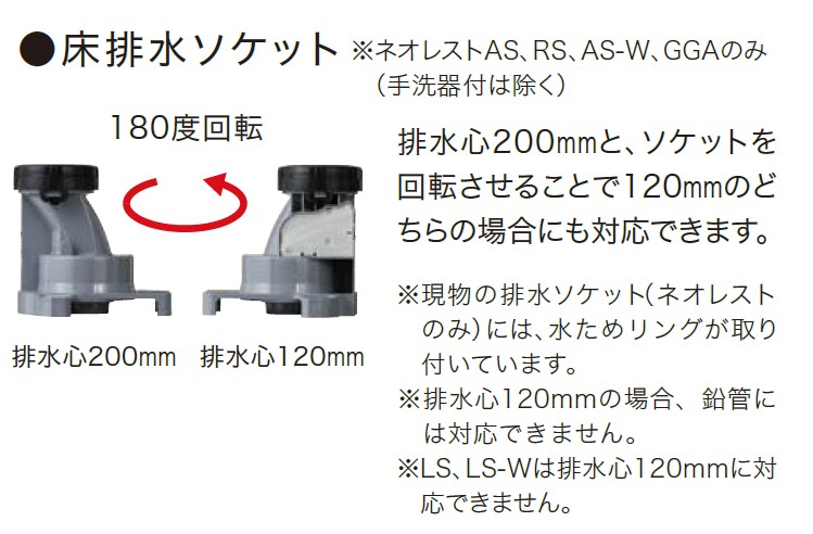 ②「排水心120㎜・フランジ/鉛管接続(HP430系、T53WR75/100、T90SW75/100)」は対応できません。
