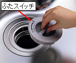 ディスポーザはふたスイッチ内の磁石を検知しないと作動しないようになっています。投入口の ▽ のマークと、ふたの △ のマークを合わせた位置でふたをはめてから、右へ回してください。 正常な位置に来れば、短い鳴動音で合図があります。