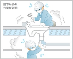 まず和風大便器を撤去しなければなりませんが、「器具の交換」だけでは済まず、「(階下からの)床のやり直し」が発生し、専門技能が必要となります。専門の工事店様にご相談ください。