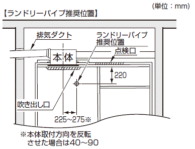 ■各三乾王の設置説明書(施工説明書)のランドリーパイプ取付推奨位置を参照ください。