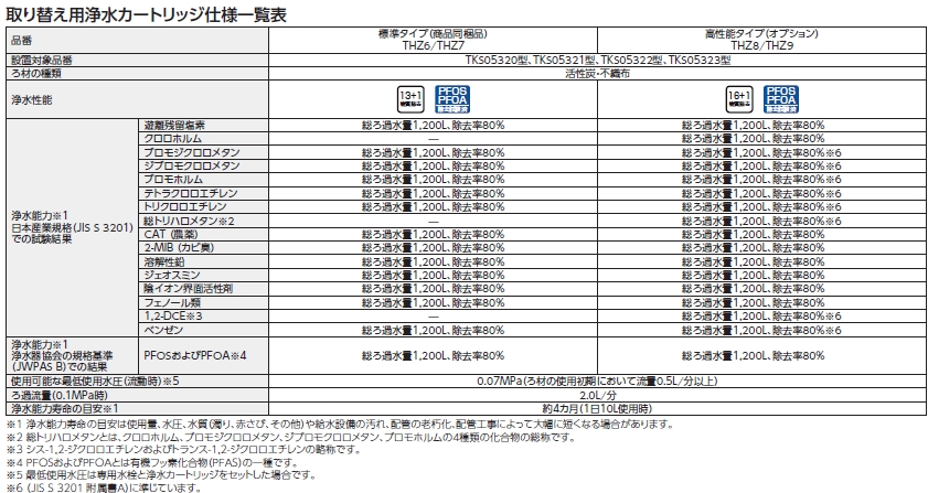 標準タイプと高性能タイプでは、浄水カートリッジの何が違うのでしょうか?