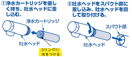 ・浄水カートリッジは必ず、Oリングを吐水ヘッド側にして入れてください。