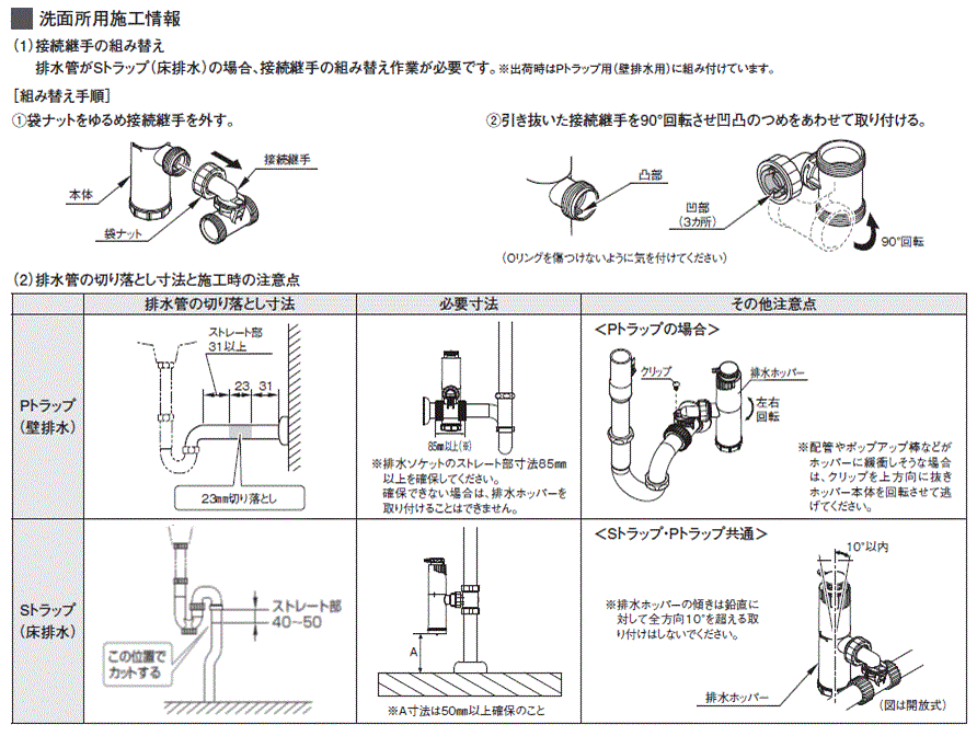 <<排水ホッパー(パブリック用)>>・洗面所用排水ホッパーの施工方法は?■対象排水ホッパー品番RHE97H-25/32/38RHE22H-32■対象商品先止め式電気温水器(パブリック洗面・洗い物用)*REWではじまる品番
